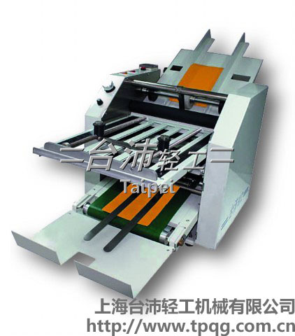 TP系列自动折纸机高精度分张结构,耐磨耐热,分张准确不夹纸,特别适用非常薄的纸张(25g/㎡以上)。速度快,每小时20,000张。特制的离合器使机器在运转中不必停机,即可中断进纸动作,不会有纸张折了一部份的情况。出纸时一张一张叠放整齐,可50张100张叠放送出,不但收集容易,更方便入库计数。